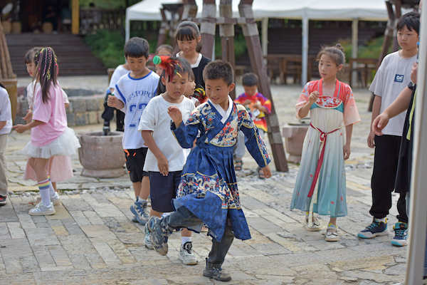 游客張梓萱說(shuō):“玩了投壺、套圈圈、打糍粑、踢毽子,非常開心,穿起漢服像穿越到了古代一樣,特別神奇,我非常開心。”